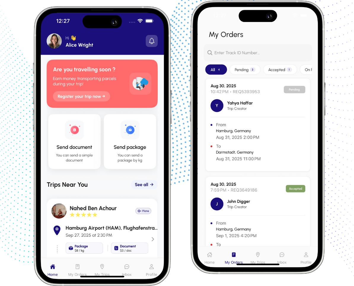 • Tous les paiements sont sécurisés et conservés jusqu’à confirmation de la livraison, chaque voyageur étant vérifié et évalué pour la fiabilité.